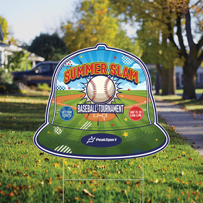 12" x 14" Custom Sports Cap Shaped Full Color Yard Signs - Double Side