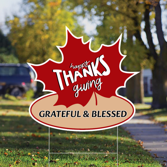 15" x 16" Personalized Leaf Shaped Full Color Yard Signs - Double Side