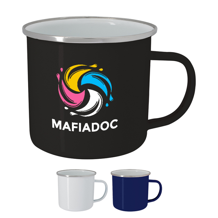 16 Oz Custom Imprinted Full Color Steel Campfire Mug is a durable and stylish drinkware option designed for both indoor and outdoor use. Crafted from strong steel, this mug is built to handle everyday wear while maintaining its rugged charm. The powder coated finish enhances durability and adds a modern touch, making your full-color logo stand out with bold clarity. With a 16 oz capacity, it’s perfect for morning coffee, hot cocoa, or tea at the office, campsite, or backyard gathering. The classic campfire silhouette and sturdy handle provide a comfortable grip, making it a favorite for outdoor events, company retreats, promotional giveaways, and branded merchandise. This mug meets FDA requirements and is recommended for hand washing to preserve the vibrant imprint and finish.Looking for more? Explore our collection of campfire mugs ight away.Get free design, free online proofs and fastest turnaround offers.