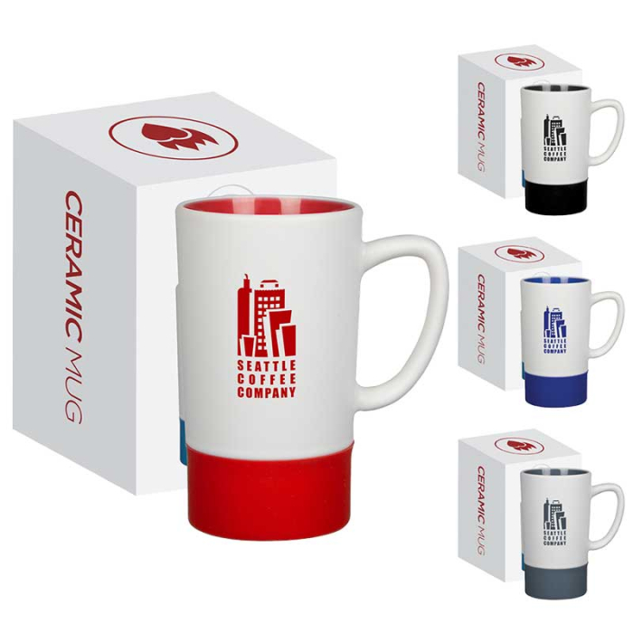 16 Oz Imprinted Monument Ceramic Mugs with Silicone Accent