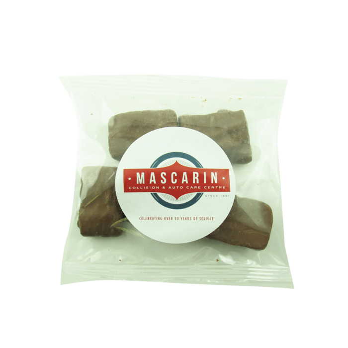 Request a quote to know wholesale savings for 2 Oz Imprinted English Butter Toffee Handfuls.