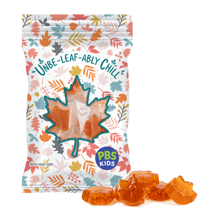 Celebrate seasonal promotions with these 2 Oz Promotional DigiBag™ of Maple Flavored Candies. Each bag is packed with charming maple leaf–shaped hard candies made using pure maple syrup, delivering a rich, authentic taste customers love. The individually wrapped pieces make sharing simple while extending brand exposure. Housed in a vibrant full-color DigiBag™, your logo and message stay front and center as recipients enjoy this festive treat. Ideal for fall events, corporate giveaways, holiday promotions, or customer appreciation, this maple candy bag blends seasonal flavor with powerful brand visibility.Looking for more? Explore our collection of custom candy  right away.Get free design, free online proofs and fastest turnaround offers.