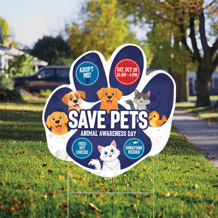 20" x 20" Custom Paw Shaped Full Color Yard Signs