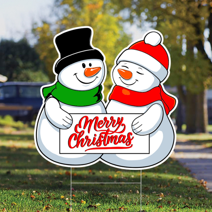 20" x 20" Custom Printed Snowman Shaped Full Color Yard Signs - Double Side