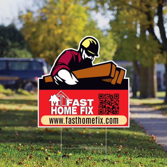 20" x 20" Imprinted Construction Worker Shaped Full Color Yard Signs - Double Side