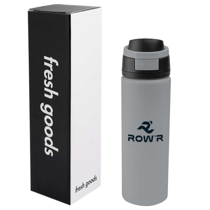 • Includes #50240 – 24 Oz. Pop Sip Recycled Stainless Steel Bottle and Fresh Goods box