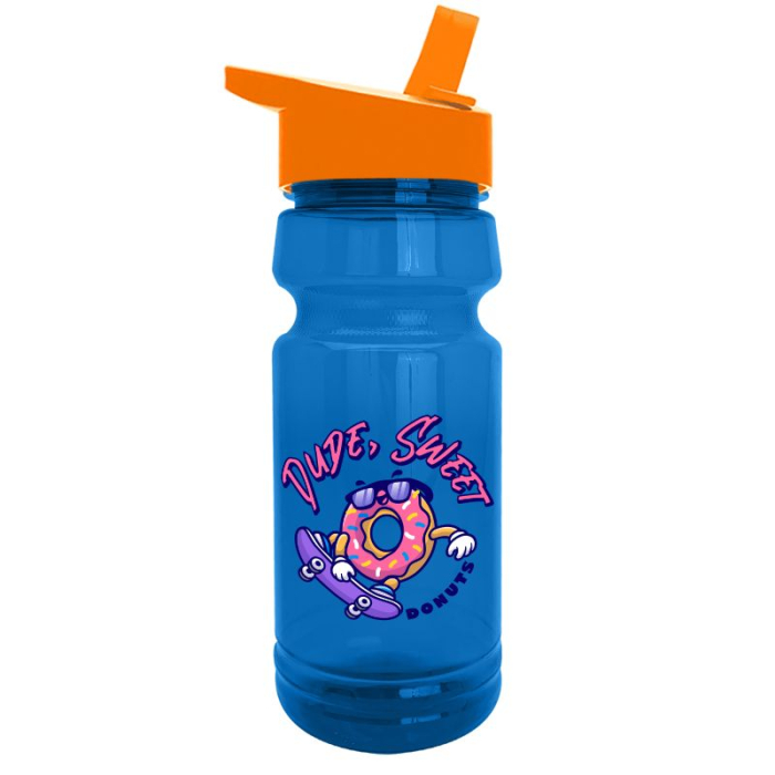 This 24 oz custom trainer RPET bottle is designed to support active lifestyles while promoting sustainability. Made from 98% post-consumer recycled PET, it offers an eco-conscious solution without compromising durability. The contoured body and textured grip provide a secure, comfortable hold during workouts, travel, or daily commutes. Its flip-straw lid with molded carry loop ensures easy, spill-resistant hydration on the go. With mix-and-match bottle and lid color options, this bottle can be tailored to match any brand identity, making it an ideal promotional item for fitness centers, outdoor events, and wellness campaigns.Looking for more? Explore our collection of plastic water bottles  right away.Get free design, free online proofs and fastest turnaround offers.