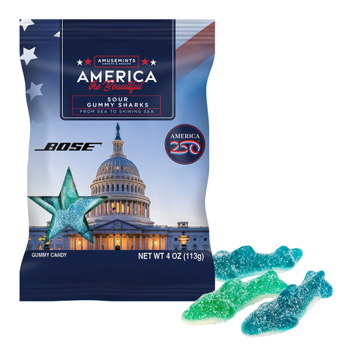 4 Oz Custom Imprinted America 250 Digibag Sour Sharks
