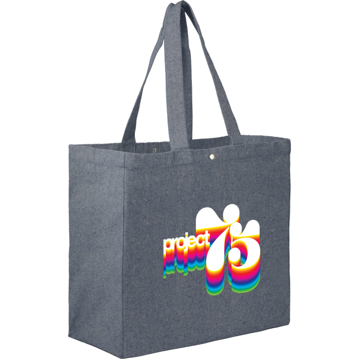 The 5 Oz Customized Eon Recycled Cotton Totes are designed with sustainability and practicality in mind. Made from lightweight 5oz recycled cotton, these totes provide a responsible alternative to conventional bags while maintaining durability for daily use. The large open main compartment and all-side gusset design offer generous storage, perfect for books, lunch containers, or everyday essentials. An antique brass snap closure adds security and a touch of style, while the 11" drop handles make carrying effortless. Flat-pack construction allows easy storage when not in use, making these totes ideal for personal use or branded promotions.Looking for more? Explore our collection of cotton tote bags right away.Get free design, free online proofs and fastest turnaround offers.