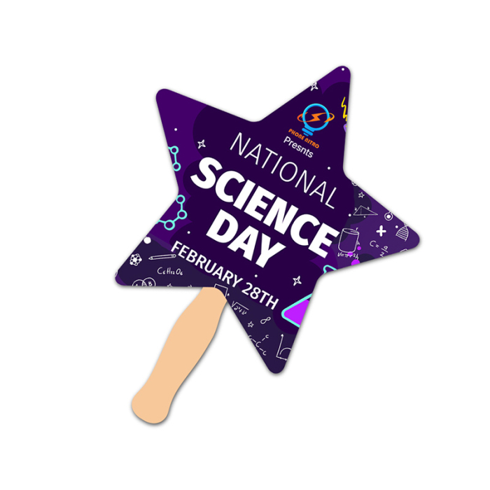 Request a quote to know wholesale savings for 5x5 Inch Custom Star Shape Full Color One Sided Mini Hand Fans - 16 pt.