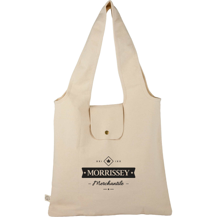 These 8 Oz Imprinted Packable Organic Cotton Totes combine sustainability, practicality, and style. Crafted from durable 100% organic cotton, the midweight 8oz material stands up to repeat use while remaining lightweight enough for convenient carrying. The tote folds neatly into itself with a snap closure, making it perfect for glove compartments, travel kits, or drawer storage. Once unfolded, the spacious main compartment and reinforced handles handle heavier items comfortably. Its minimalist design ensures versatility for retail, corporate giveaways, or event promotions, making this tote both functional and stylish for everyday eco-conscious living.Looking for more? Explore our collection of  cotton tote bags right away.Get free design, free online proofs and fastest turnaround offers.