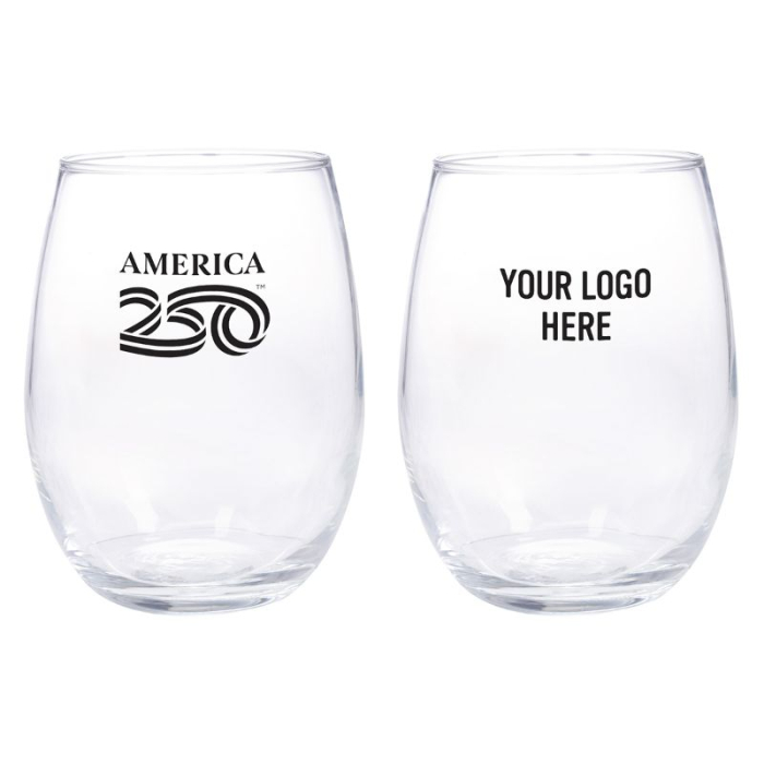 AMERICA250™ 15 Oz Imprinted Wine Glasses are ideal for patriotic celebrations, corporate events, client gifts, or branded giveaways. The stemless design offers versatility for wine, cocktails, or cold beverages, while the clear goose egg shape provides a sophisticated, modern aesthetic. Custom imprinting ensures your brand or message is front and center, making these glasses both practical and memorable. Perfect for gifting or event use, these glasses combine quality, style, and commemorative value in one elegant package.Official AMERICA250™ merchandise, perfect for commemorative events or giftsLooking for more? Explore our collection of America 250 products right away.Get free design, free online proofs and fastest turnaround offers.
