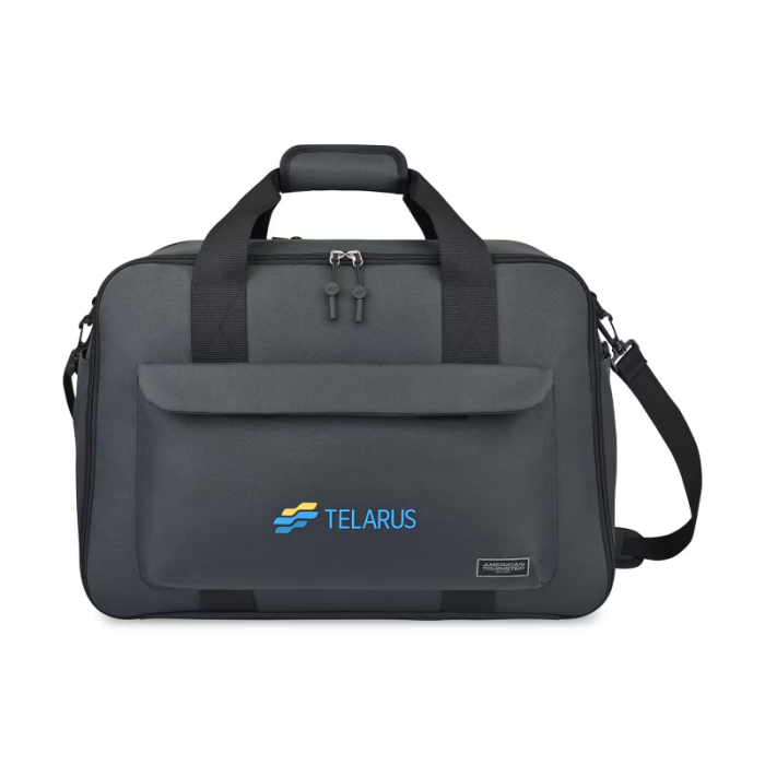 The American Tourister® Custom Imprinted Embark Weekenders are perfect for business trips, weekend getaways, or overnight travel. The spacious main compartment features compression straps to keep belongings secure, while a dedicated shoe bag keeps footwear separate and clean. Interior mesh zippered pockets and a tricot-lined side pocket organize smaller essentials, and the back padded laptop compartment protects devices up to 15 inches. The removable padded shoulder strap and trolley sleeve make carrying effortless, while the front flap pocket adds quick-access storage. Lightweight, durable, and PVC-free, this weekender bag is a practical, stylish choice for travel-focused promotions, keeping your brand front and center wherever the journey takes your recipients.Looking for more? Explore our collection of travel bags right away.Get free design, free online proofs and fastest turnaround offers.