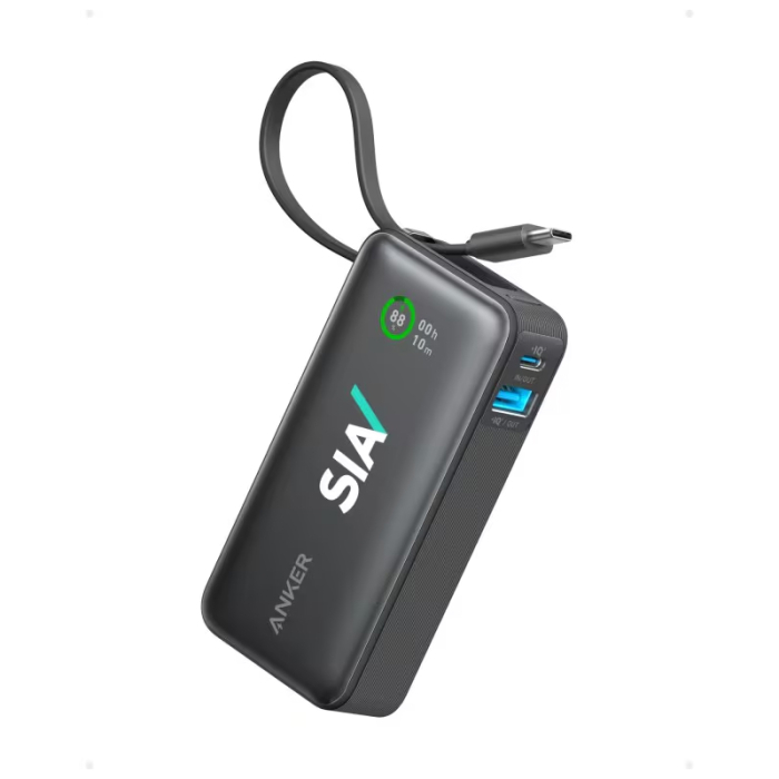 Anker® Promotional Nano Power Banks are the perfect solution for clients, employees, or tech enthusiasts who need reliable power on the move. Its 10,000mAh battery ensures multiple charges for smartphones, tablets, and laptops, while the built-in USB-C cable and dual USB-A ports provide versatile charging options. Compact and pocket-friendly, it features an integrated handle for grab-and-go convenience. The stylish, travel-ready design is also eco-conscious, using 80% post-consumer recycled (PCR) materials to reduce environmental impact. A high-visibility promotional item that combines functionality, portability, and sustainability for your brand.Looking for more? Explore our collection of  power banks right away.Get free design, free online proofs and fastest turnaround offers.