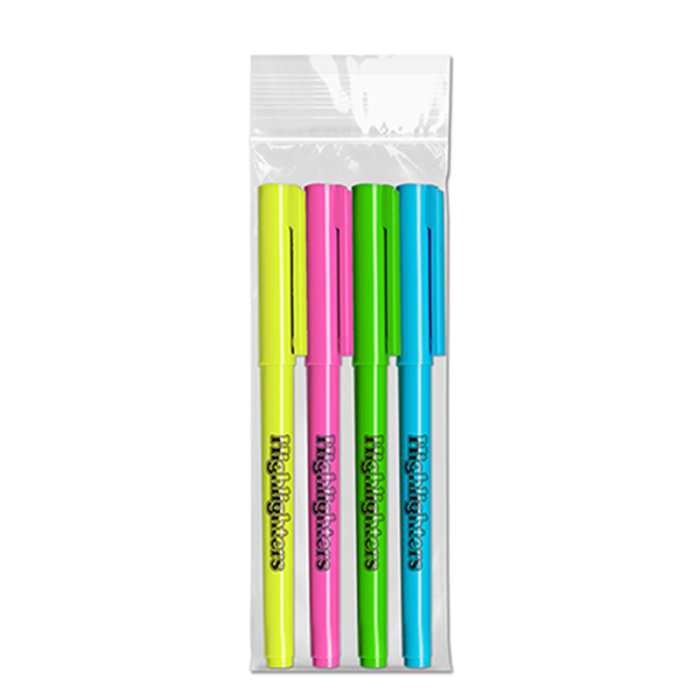 • Set of 4 pocket-size highlighters in bright fluorescent colors