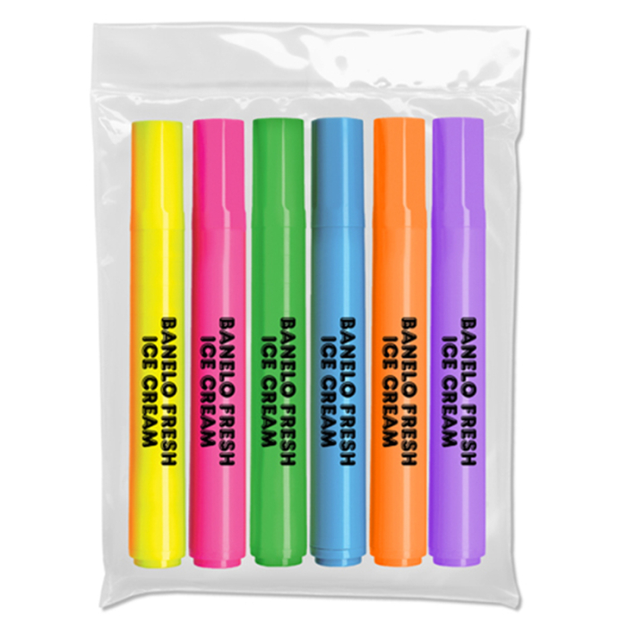 Brite Spots® Custom Printed 6 Piece Highlighters are designed to make important information stand out with vivid fluorescent color. The transparent, read-through ink highlights key text without covering it, making these highlighters ideal for notes, documents, and study materials. Each jumbo highlighter features Liqui-Mark’s unique, patented Triplex Tip®, delivering smooth ink flow and dependable performance for highlighting, underlining, or marking. Made in the USA, this 6-piece set offers everyday practicality with strong promotional value, making it perfect for offices, schools, conferences, and trade shows where your brand deserves repeated visibility.Looking for more? Explore our collection of highlighters right away.Get free design, free online proofs and fastest turnaround offers.