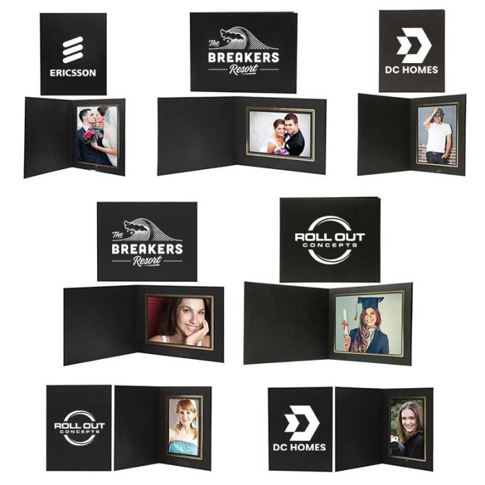Elevate any photo or promotional image with Custom 4x6 Inch Classic Photo Mounts, featuring a sleek black frame accented with gold trim. Designed to securely hold 4x6 photographs, these mounts are perfect for displaying memories, awards, or branded images at home, in the office, or at corporate events. The durable cardboard backing ensures photos stay firmly in place, while the elegant black and gold finish adds a touch of sophistication to any space. Ideal for trade shows, corporate gifting, or personal keepsakes, these photo mounts combine practicality with timeless style. Customize with your logo or message to create a memorable promotional item that recipients will proudly display.Looking for more? Explore our collection of picture frames right away.Get free design, free online proofs and fastest turnaround offers.