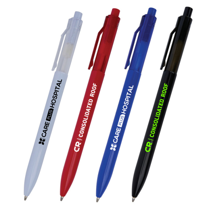 Custom Aura Recycled Plastic Ballpoint Pens combine eco-conscious materials with dependable everyday performance. Crafted from recycled ABS plastic, this pen helps support sustainability efforts while delivering a durable and lightweight writing experience. The vibrant colored barrel paired with a translucent clip adds modern visual appeal, making it a standout choice for promotions and daily use. A reliable plunge-action mechanism and smooth-flowing black ink ensure effortless writing at home, in the office, or at school. Comfortable to hold and built for regular use, the Aura pen is a practical, planet-friendly option for brands that value responsibility and style.Looking for more? Explore our collection of plastic pens right away.Get free design, free online proofs and fastest turnaround offers.