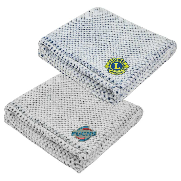 Custom Dream Weaver rPET Plush Blanket delivers exceptional comfort while supporting eco-conscious branding. Measuring a generous 60" x 50" and crafted with 290 GSM rPET fabric, this blanket offers the perfect balance of warmth, softness, and durability. Made from post-consumer recycled materials, rPET is created by melting down plastic bottles and other material sources to form new polyester fiber, giving waste a second life. The stylish waffle weave design enhances both texture and visual appeal, making it a cozy addition to homes, offices, or travel. Super soft and snuggly, this blanket is ideal for lounging, events, or thoughtful promotional gifting. Surface washable for easy maintenance, it ensures long-lasting use and everyday brand visibility.Looking for more? Explore our collection of blankets right away.Get free design, free online proofs and fastest turnaround offers.