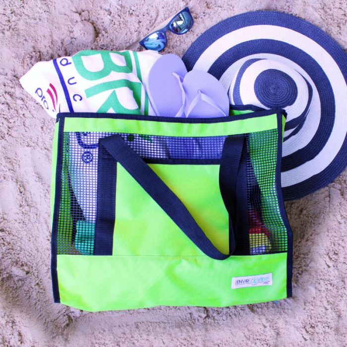 Material: Bag: Recycled Polyethylene, Towel: 75% Cotton / 25% Recycled Polyester