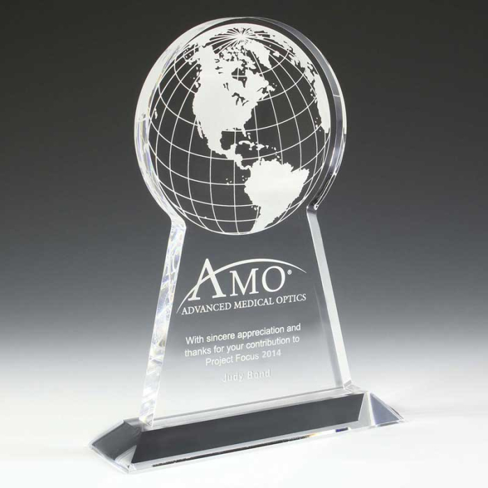 Honor achievements with custom imprinted tall acrylic globe awards featuring a classic globe design.