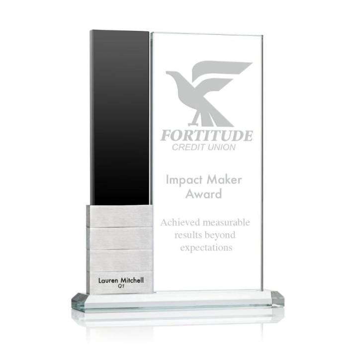 The Custom Imprinted Brick-by-Brick Awards feature a vertical Starfire crystal tower with a side panel designed to hold up to 10 brushed-aluminum stackable blocks. Each award includes one block, with additional blocks available for an extra charge to support continued recognition over time. The structure allows organizations to add blocks as achievements are reached, making it ideal for employee-of-the-month programs and milestone celebrations. The combination of crystal and aluminum elements provides a clean, structured presentation while maintaining a functional format for ongoing acknowledgment. This perpetual award offers a practical way to display progress and recognize contributions consistently.Looking for more? Explore our collection of  awards  & trophiesright away.Get free design, free online proofs and fastest turnaround offers.