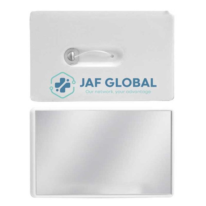 Custom Imprinted Credit Card Dental Floss with Mirror is a smart and practical giveaway that promotes everyday oral hygiene while keeping your brand top of mind. Designed to be the same size as a standard credit card, this compact floss dispenser slips easily into wallets, pockets, or bags for on-the-go use. It includes approximately 10 1/2 yards of smooth waxed floss to help remove plaque and food debris, along with a built-in mirror for quick smile checks anytime, anywhere. Ideal for dentists, orthodontists, healthcare providers, wellness programs, tradeshows, and medical-themed conventions, this useful promotional item delivers daily value and lasting brand exposure.Looking for more? Explore our collection of dental promotional products right away.Get free design, free online proofs and fastest turnaround offers.