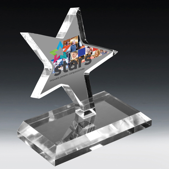 Custom imprinted dancing star awards provide a professional and stylish way to honor star achievers. The dynamic star design captures attention, while the durable acrylic construction ensures a long-lasting display. Personalization can be applied using screen printing, laser engraving, or four-color process printing to feature logos, names, or messages. Ideal for corporate recognition, employee awards, academic honors, or special events, these dancing star acrylic awards blend modern design, elegance, and customization for a memorable and meaningful keepsake.Looking for more? Explore our collection of awards & trophies right away.Get free design, free online proofs and fastest turnaround offers.