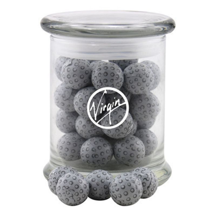 Custom Imprinted Glass Jars with Chocolate Golf Balls