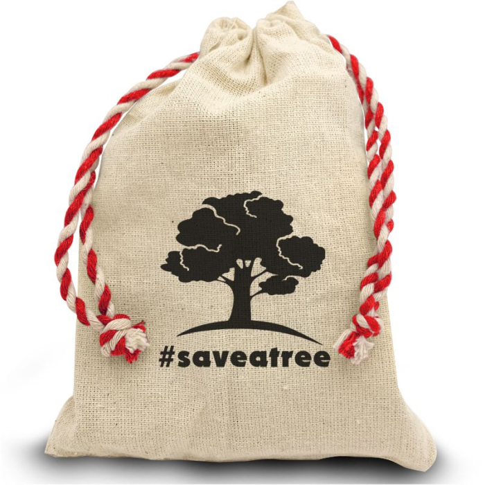 • 100% natural cotton drawstring pouch with two-tone cords