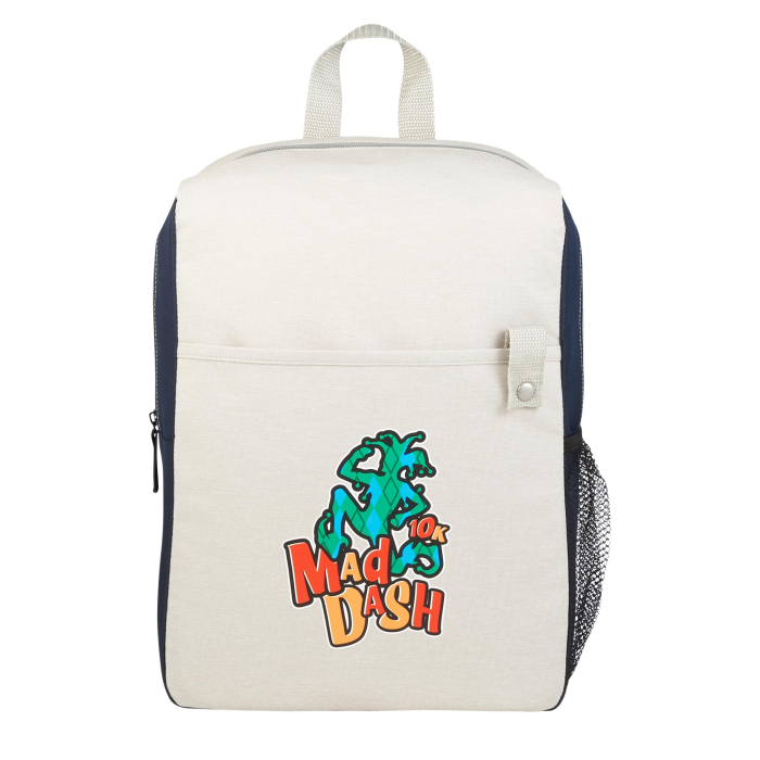 Custom Imprinted Hopper Backpacks offer a reliable and stylish solution for carrying daily essentials. Constructed from sturdy 600D PolyCanvas material, this backpack is designed to handle everyday use while maintaining a lightweight and comfortable feel. The zippered main compartment provides ample space for books, work materials, or personal items, while the front slash pocket allows easy access to smaller belongings such as phones, keys, or notebooks. A convenient side mesh pocket is perfect for holding a water bottle or other quick-grab accessories. The trendy color blocking design adds visual appeal that stands out in school, campus, travel, and promotional settings. With padded adjustable shoulder straps for comfortable carrying and a prominent area for custom logos, this backpack makes a practical and eye-catching promotional giveaway that recipients will use regularly.Looking for more? Explore our collection of unique and stylish backpacks right away.Get free design, free online proofs and fastest turnaround offers.