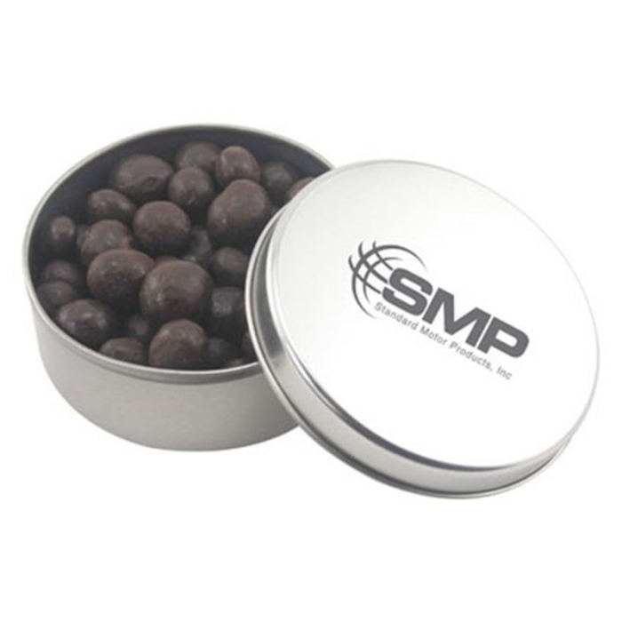 Custom Imprinted Round Tins with Choc Espresso Beans