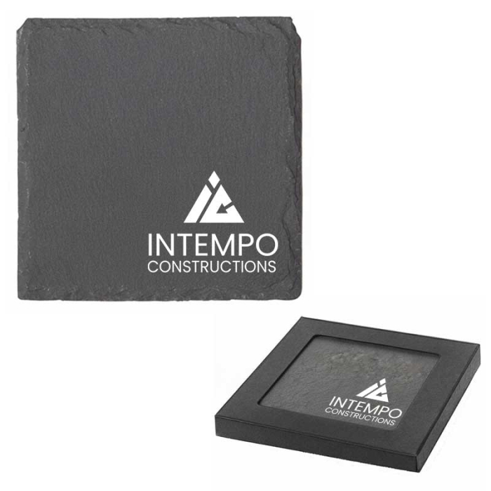 Sophisticated style meets everyday functionality.Natural square slate coasters that protect surfaces while highlighting your brand.