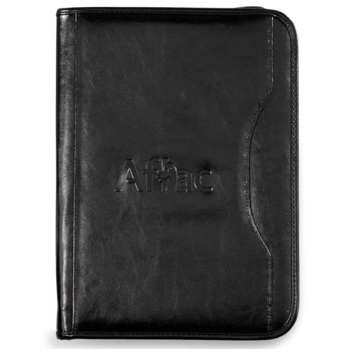 Custom Imprinted Wall Street Padfolios deliver practical organization for professionals who need a reliable companion for meetings, conferences, and business travel. This updated version of the popular design includes convenient storage for modern tech accessories, making it easy to keep devices and documents organized in one place. The multi-function organizer neatly stores memory sticks, cell phones, CDs, and business cards for quick access during presentations or meetings.A large gusseted pocket provides generous room for catalogs, files, and paperwork, while the zippered closure keeps everything secure on the go. The included 8.5" x 11" paper pad can also be switched to the left side to accommodate left-handed users and replaced with an A4 pad when needed. A slash pocket fits most tablets, making this padfolio a versatile choice for modern professionals.Looking for more? Explore our collection of portfolios right away.Get free design, free online proofs and fastest turnaround offers.