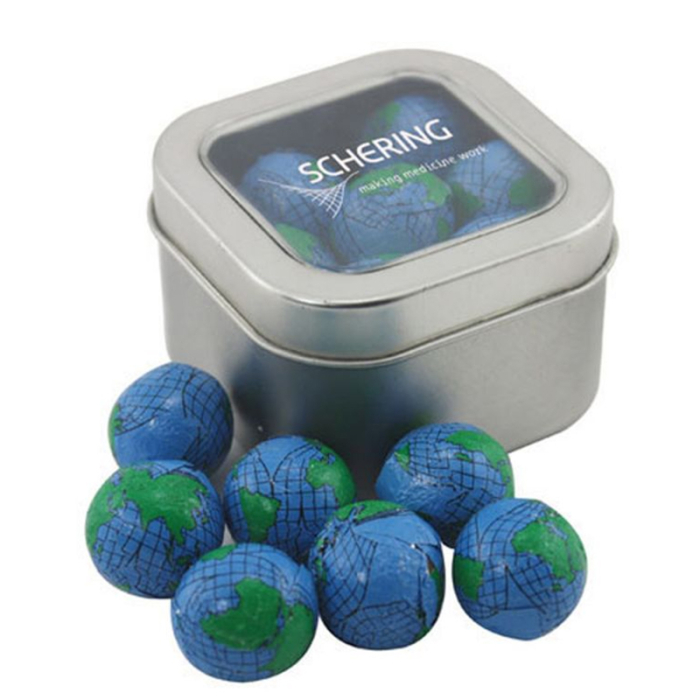 Custom Imprinted Window Tins with Chocolate Globes are a unique and tasty way to promote your brand while delighting recipients with a fun, globe-shaped chocolate treat. Each tin features a clear window top that displays the chocolate globes inside, creating instant visual appeal and adding value to your branded giveaway. The reusable tin ensures your logo remains visible long after the chocolates are enjoyed, extending your promotional impact. Bulk packed for convenience, these tins are perfect for trade shows, corporate gifting, educational events, fundraising campaigns, and seasonal promotions. With custom imprinting and eye-catching appeal, these tins turn every giveaway into a memorable and engaging marketing experience.Looking for more? Explore our collection of individual chocolates right away.Get free design, free online proofs and fastest turnaround offers.