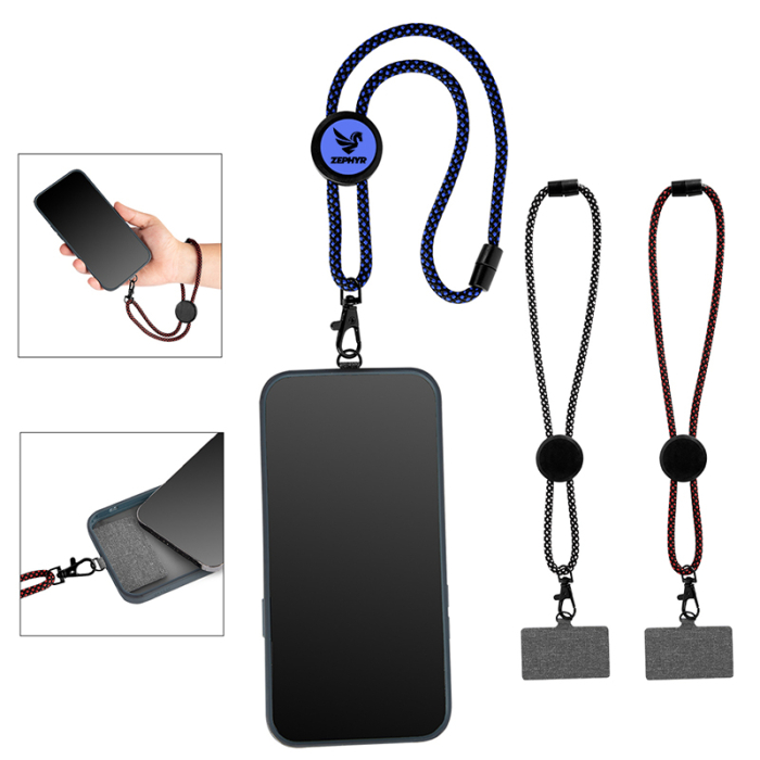 Custom Imprinted rPET Phone Tether Wristlets combine sustainability with everyday convenience. Made from post-consumer recycled polyester (rPET) with ABS components, this wristlet offers durability and eco-conscious appeal. The adjustable strap with snap closure ensures a secure and comfortable fit, while the included tether patch attaches neatly inside your phone case for added protection and accessibility. A swivel lobster claw allows users to connect keys, the tether patch, or other small essentials, keeping everything within easy reach. Perfect for trade shows, corporate giveaways, or everyday use, this wristlet is a functional, reusable accessory that merges style, practicality, and sustainability in one compact item.Looking for more? Explore our collection of phone holders right away.Get free design, free online proofs and fastest turnaround offers.