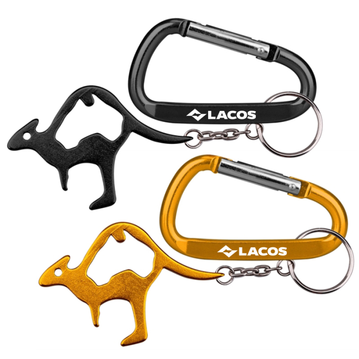 Request a quote to know wholesale savings for Custom Kangaroo Shape Bottle Opener Keychains with Carabiners.