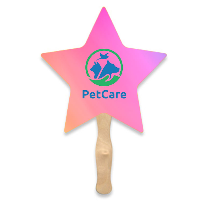 Request a quote to know wholesale savings for Custom Lightweight Two Sided Single Paper Star Shape Hand Fans.