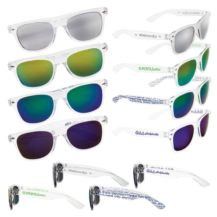 Custom Mirrored Lens Sunglasses are perfect for outdoor events, summer promotions, or stylish everyday wear. The mirrored lenses minimize glare while providing 100% UV protection, ensuring clear vision in bright light. Available in multiple vibrant lens colors to match your style or brand, each pair features a clear frame with imprintable arms for maximum brand visibility. Lightweight, compliant, and fashionable, these sunglasses are a practical and memorable promotional accessory that recipients will love to wear again and again.Looking for more? Explore our collection of sunglasses right away.Get free design, free online proofs and fastest turnaround offers.
