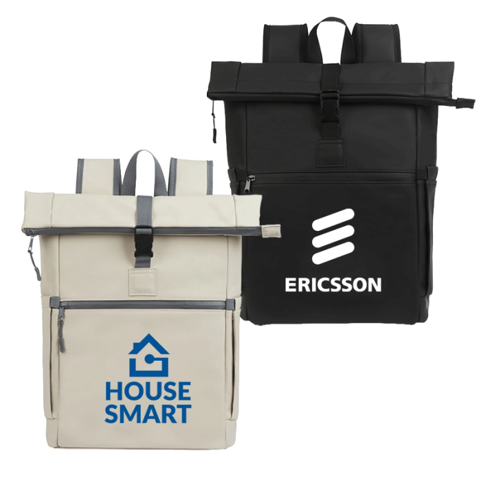 Custom Printed Casey PU Roll-Top Laptop Backpacks