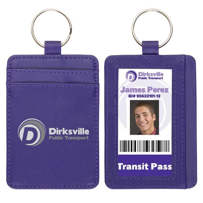 Custom Printed Deluxe ID Holder Wallets offer a practical solution for carrying identification, access cards, and essentials in one compact accessory. The front-facing, side-loading ID window allows users to quickly scan or display badges without removing them, making it ideal for offices, schools, events, and secure facilities. Two card slots on the back provide added storage for cards or permits, while the sturdy metal ring functions as a key holder or convenient lanyard attachment. Designed for everyday use, this ID holder delivers functionality, organization, and consistent brand exposure wherever it’s carried.Looking for more? Explore our collection of name badge holders right away.Get free design, free online proofs and fastest turnaround offers.