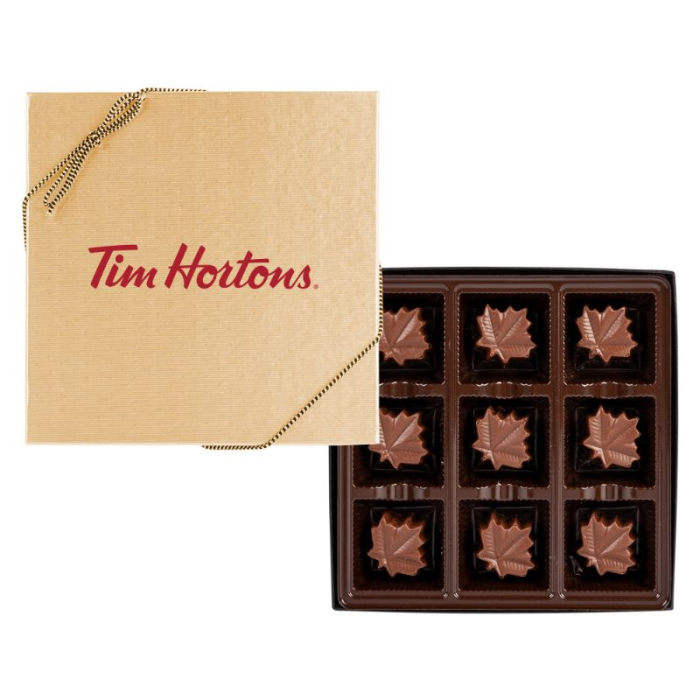 • Large gift box filled with nine milk chocolate maple leaves
