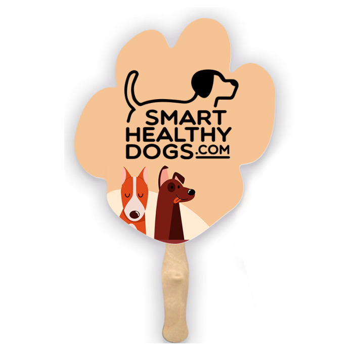 Request a quote to know wholesale savings for Custom Printed Lightweight Two Sided Single Paper Paw Shape Hand Fans.