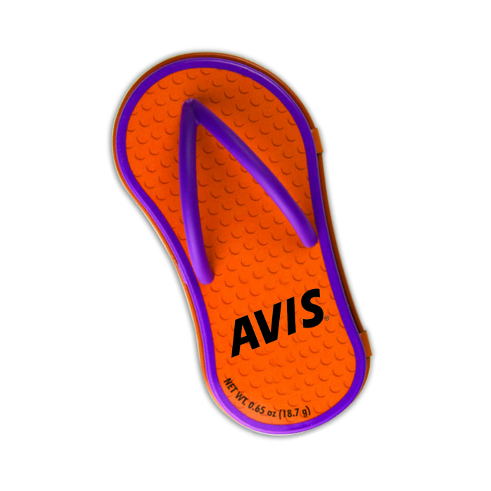 Bring a burst of sunshine to your next promotion! These orange flip flop-shaped mint tins combine playful design with everyday usefulness, making them a standout giveaway for clients, customers, and employees.