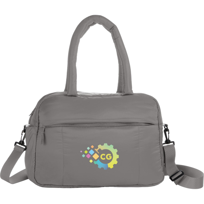 Custom Printed Puffer Recycled Duffle Bags are crafted from quilted fabric made with recycled materials, ensuring durability while reducing environmental impact. The spacious main compartment accommodates clothing, gear, or travel essentials, while padded construction protects items inside. Front and side pockets provide convenient storage for phones, chargers, and hydration bottles. A trolley sleeve slides over rolling luggage handles for effortless travel, and dual carry options offer flexibility on the go. With a minimalist silhouette and soft quilted design, these duffle bags make stylish, functional, and eco-conscious promotional items or personalized gifts.Looking for more? Explore our collection of  duffel bags right away.Get freedesign, free online proofs and fastest turnaround offers.