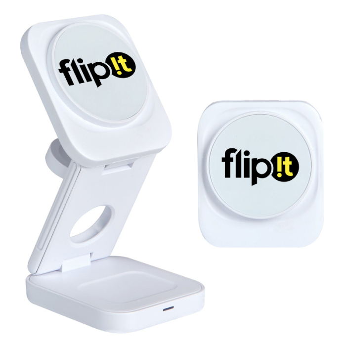 Custom Printed Seth 3-in-1 15W Wireless Charging Station is designed to simplify and elevate your charging routine. Engineered for efficiency, this all-in-one station delivers fast 15W wireless output for smartphones with magnetic attachment, ensuring a secure and reliable charge every time. Dedicated charging areas provide 5W power for Apple AirPods and 2.5W for Apple Watch, allowing you to power multiple essential devices simultaneously without clutter. Its compact, foldable design makes it perfect for office desks, nightstands, or travel bags, offering convenience wherever you go. Stylish, space-saving, and highly functional, this charging station is a premium promotional tech gift that keeps your brand connected to everyday life.Looking for more? Explore our collection of wireless chargers right away.Get free design, free online proofs and fastest turnaround offers.