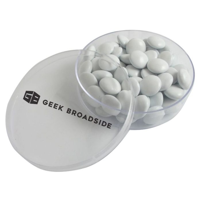 Custom Printed Small Round Acrylic with Chocolate Buttons is a fun and effective way to put your brand directly into customers’ hands. Measuring just 2 7/8", this compact clear acrylic container is easy to carry, display, and reuse, keeping your logo visible long after the chocolates are gone. Inside, 1.5 oz. of delicious chocolate buttons deliver a sweet reward that appeals to all ages. Choose assorted colors for a playful look or select a single color to align with your brand identity. Finished with a clean one-color imprint, this tasty handout is ideal for promotional events, party favors, trade shows, and holiday gifting—proof that great things really do come in small packages.Looking for more? Explore our collection of custom candy gift iboxes right away.Get free design, free online proofs and fastest turnaround offers.