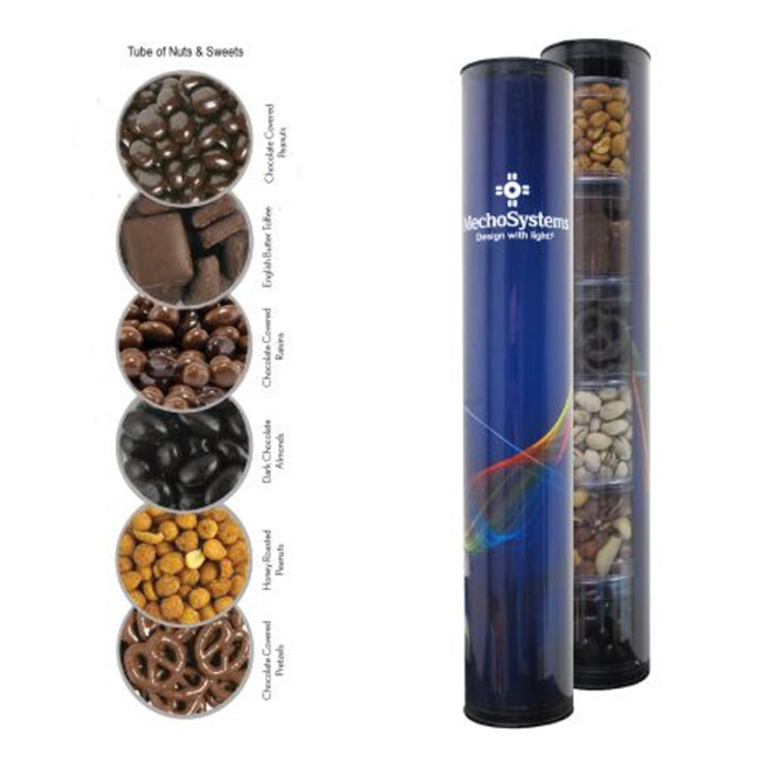 Make your appreciation stand out with Custom Printed Tubes of Nuts and Sweets. Designed to impress at first glance, these tall, clear tubes showcase a generous assortment of sweet and savory favorites that appeal to every taste. From rich chocolate-covered treats to crunchy roasted nuts, each tube delivers a satisfying mix that feels indulgent and thoughtful. Your custom imprint is placed front and center on the side of the tub, ensuring excellent brand exposure long after the event ends. Perfect for tradeshows, employment fairs, onboarding gifts, milestone celebrations, and customer appreciation campaigns, these tubes combine premium presentation with everyday enjoyment—making your message both memorable and delicious.Looking for more? Explore our collection of food & candy right away.Get free design, free online proofs and fastest turnaround offers.