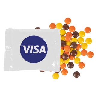 Check out our delectable range of custom logo imprinted M&M at ProImprint and make your brand popular among your sweet toothed customers. Imprint your brand on these chocolate buttons or make the best use of the wide imprint area in the wrapper and get your brand recognized. Did you know that personalized candy makes a great ice breaker at seminars and meetings and sets your brand promo rolling? Browse our online stores that are choke- a-block with custom candies and M&M’s in attractive rainbow colors and choose the one that matches your brand theme. Should you need any assistance or shopping tips, just call us at 844-776-4677 or email us at info@proimprint.com and we are always ready to assist you.