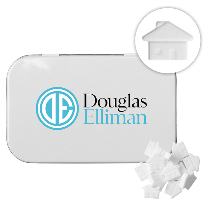 Custom Rectangular Tins with House Shaped Mints